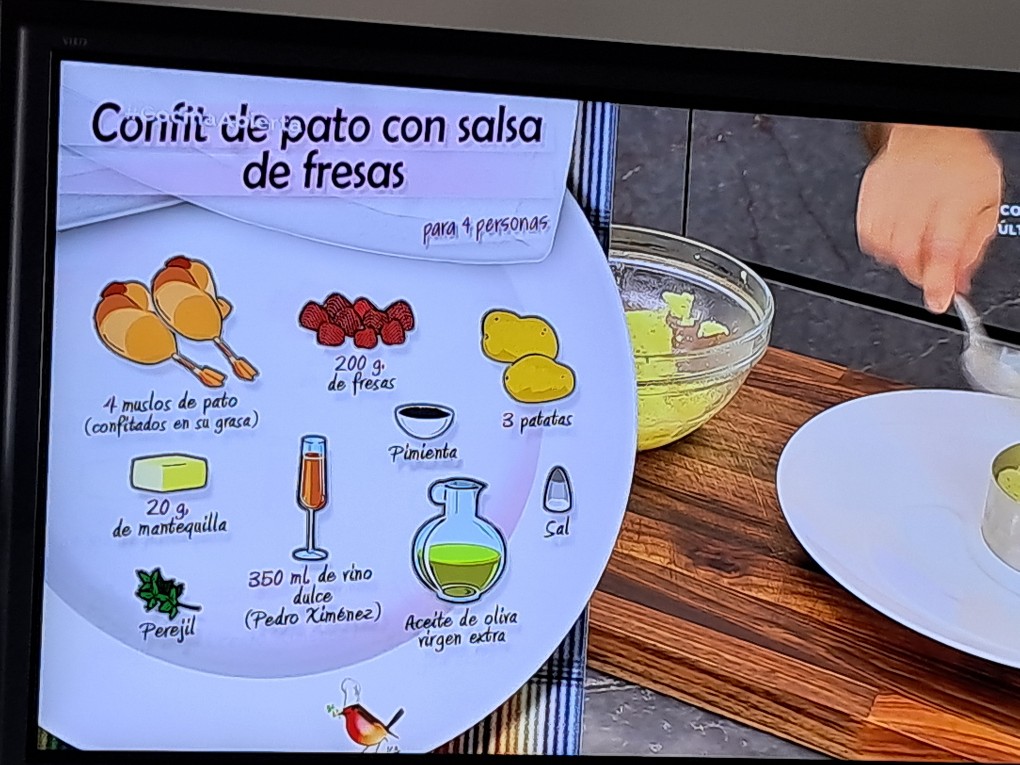 Confit de pato con salsa de fresas