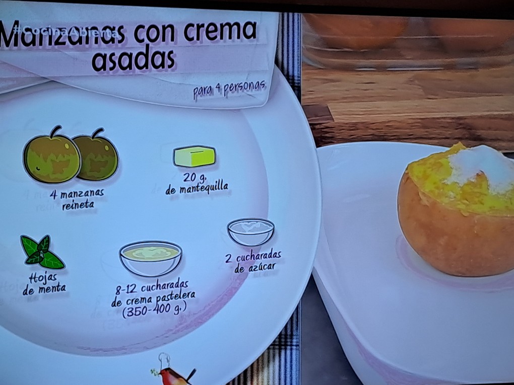 Manzanas con crema asadasFunde la mantequilla en una sartĂ©n grande, agrega la pulpa de las manzanas y saltéalas durante 4-5 minutos. Pásalas a un bol, deja que se templen un poco, agrega la masa pastelera y mezcla bien. Rellena las manzanas, colócalas sobre un recipiente apto para el horno y hornéalas a 180º C durante 15-18 minutos. Ponles un poco de azĂșcar en la parte superior y caramelizalas utilizando un soplete de cocina. |
